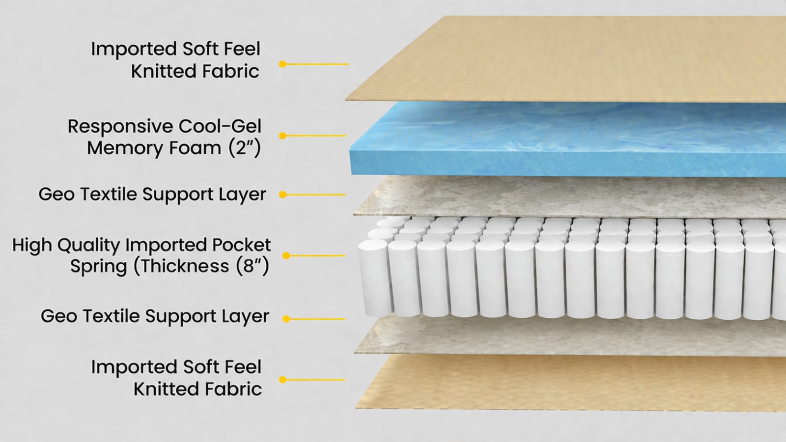 Discover the ultimate fusion of responsive support and plush comfort with our Pocket Spring Memory Foam Mattress. The medium-firm semi-HD pocket spring system features individually encased springs that move independently to isolate motion, reduce partner disturbance, and provide targeted spinal support. Topping this resilient base, a premium memory foam comfort layer gently contours to your bodyās natural curves, relieving pressure points while maintaining a balanced, medium-firm feel.